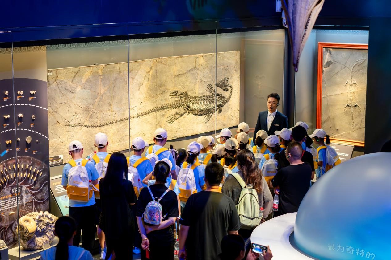 天津博物馆的古朴文物低语着历史的厚重,展厅中孩子们漫步历史长河中“目睹”天津这座城市经历的风风雨雨。国家海洋博物馆的蔚蓝展品铺陈出海洋的浩瀚。孩子们踮起脚尖,屏息凝视,仿佛指尖能触碰到时光的纹理与波涛的呼吸,在远古生物馆里,孩子们在霸王龙的骨骼前感受着2亿年前地球统治者的震撼。
